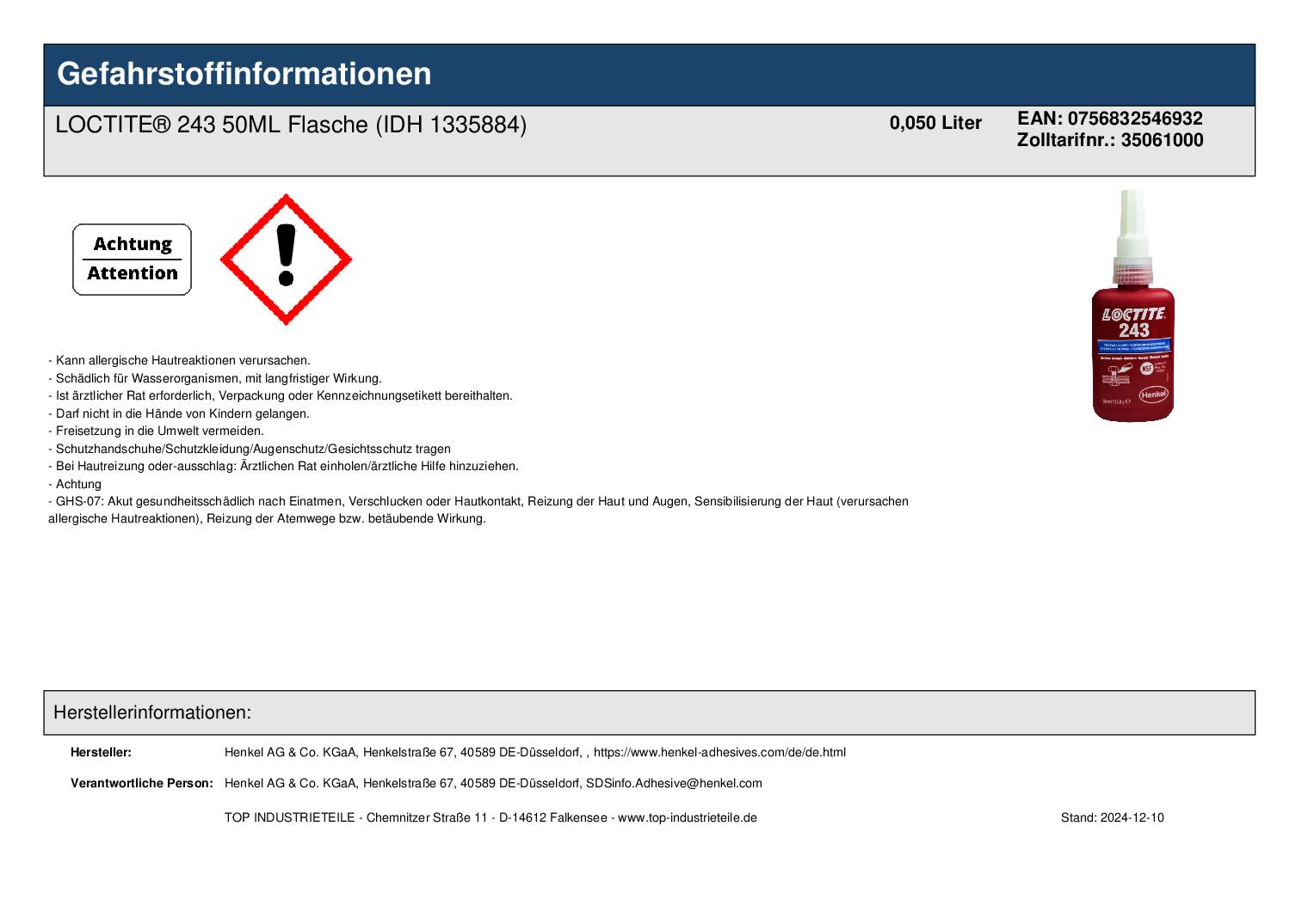 Sicherheitsdatenblatt: