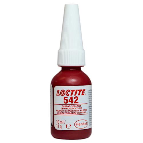 Gewindedichtung LOCTITE 542 ist eine flüssige Gewindedichtung, die ideal ist für Feingewindeverbindungen an Hydraulik- und Pneumatikanlagen sowie generell für Verschraubungen. Sie ist geeignet für Metall, besonders Hydraulikrohre und ist DVGW zertifiziert.