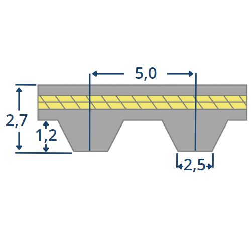 Polyurethan Zahnriemen oder kurz auch PU oder PUR Zahnriemen genannt, werden standartmäßig mit Stahlzugträger gefertigt und sind nahezu wartungsfrei da die Riemenspannung konstant bleibt und die Dehnung sehr gering ist. PU Zahnriemen sind optisch gut auseinander zu halten von Neopren Zahnriemen, da diese weiß, grau oder fast transparent sind. Polyurethan Riemen sind für Betriebseinsatzgrenzen zwischen -30°C bis +80°C geeignet. Durch Ihre vorteilhaften Eigenschaften sind Sie Wartungsarm und daher unentbehrlich für die meisten Anwendungsbereiche. Sie finden ihre Anwendung beispielsweise in synchronen Förderanlagen, zur Steuerung von linearen Bewegungen oder in Antriebs- und Transportsystemen eingesetzt. Der PU Zahnriemen besteht zum Teil aus Polyurethan, dass eine gute Beständigkeit gegenüber Öle, Säuren und alkalischen Flüssigkeiten aufweist.Durch den dehnungsarmen Stahlzugstrang im Riemenrücken bestitzt der Riemen eine hohe Biegewilligkeit. Dank dieser Eigenschaften verfügt dieser Zahnriemen über eine hohe Lebenserwartung, Reißfestigkeit und einen sehr niedrigen Reibungskoeffizienten.