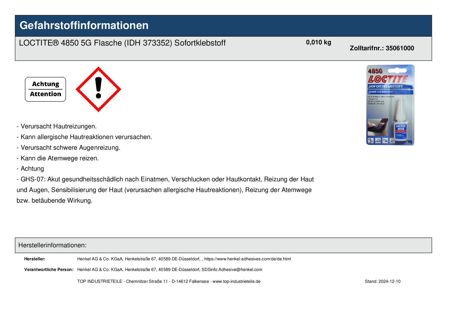 Henkel AG & Co. KGaA Support Henkelstraße 67 40589 Düsseldorf DE SDSinfo.Adhesive@henkel.com