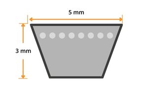 Klassische Keilriemen im Profil 5 nach DIN 2215 zählen zu den kleinsten standardisierten Keilriemenprofilen und eignen sich besonders für kompakte Antriebssysteme mit begrenztem Bauraum. Mit einer Profilbreite von 5 mm und einer Höhe von 3 mm übertragen sie die Leistung kraftschlüssig über die Flanken der Riemenscheiben. Die definierte Wirkbreite von 4,2 mm sorgt dabei für eine zuverlässige Kraftübertragung und einen gleichmäßigen Lauf.