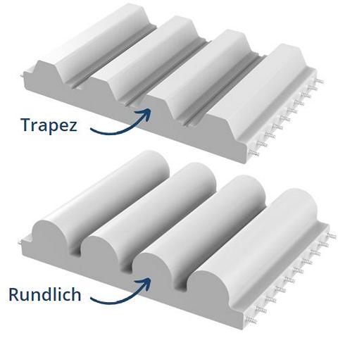 Zahnriemen werden in verschiedenen Zahnformen hergestellt. Dabei kommen rundliche als auch trapezförmige Zahnformen infrage, die jeweils aus unterschiedlichen Materialien sein können. Die Wahl derjenigen Form und des geeigneten Materials hängt dabei immer vom Anwendungsfall ab. Die Zahn Form muss immer passend zur Zahnscheibe gewählt werden. Jede Zahn Form wird wiederum auch in unterschiedlichen Teilungen, Längen & Breiten hergestellt. Ob rund oder trapezförmig – um die maximale Effizienz zu erzielen, muss im Antrieb die korrekte Riemen/Scheiben Kombination eingesetzt werden.