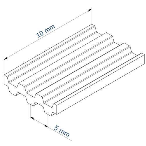Zahnriemen aus Polyurethan Elastomeren (PUR - allgemeiner auch als PU bekannt - hergestellt aus Kunststoffen / Kunstharze), werden standardmäßig mit Stahlzugträgern verstärkt und sind meist weiß, grau oder sogar schon fast transparent. Die Dehnung der PU Zahnriemen ist geringer gegenüber der Gummiriemen und die Riemenspannung bleibt beinahe zu konstant. Polyurethan Riemen sind für Betriebseinsatzgrenzen zwischen -30°C bis +80°C geeignet. Durch ihre vorteilhaften Eigenschaften sind Sie Wartungsarm und daher unentbehrlich für die meisten Anwendungsbereiche. Sie finden ihre Anwendung beispielsweise in synchronen Förderanlagen, zur Steuerung von linearen Bewegungen oder in Antriebs- und Transportsystemen. Der PU Zahnriemen besteht zum Teil aus Polyurethan, dass eine gute Beständigkeit gegenüber Öle, Säuren und alkalischen Flüssigkeiten aufweist. Durch den dehnungsarmen Stahlzugstrang im Riemenrücken, bestitzt der Riemen eine hohe Biegewilligkeit. Dank dieser Eigenschaften verfügt dieser Zahnriemen über eine hohe Lebenserwartung, Reißfestigkeit und einen sehr niedrigen Reibungskoeffizienten.