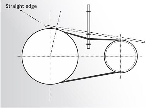 Ziehen Sie eine Schnur oder einen Faden über beide Riemenscheiben entlang des Riemens und markieren Sie die Mitte der Spannweite auf dem Riemen.