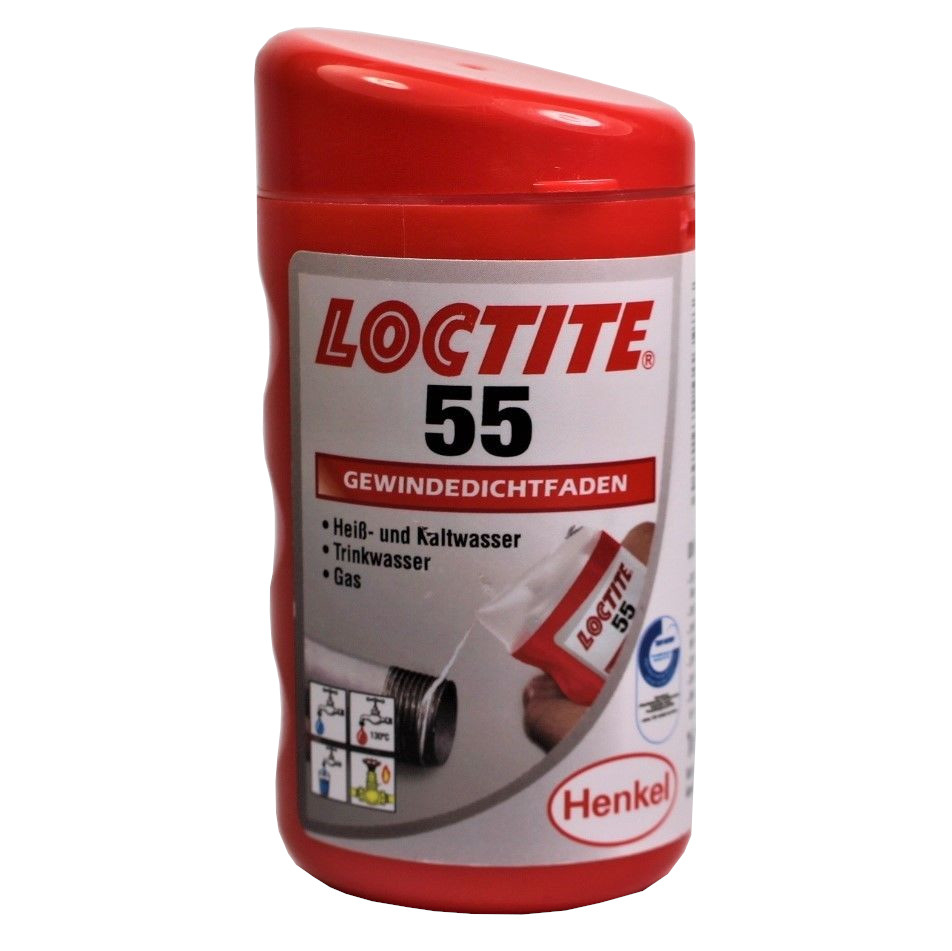 | Anaerobe Gewindedichtung da diese unter Metallkontakt und Luftabschluss zwischen Gewindegängen der Rohrverbindung aushärten. | Loctite Silikon Dichtungen vernetzen bei Raumtemperatur durch die Reaktion mit Luftfeuchtigkeit. | Loctite 55 Dichtfaden ist die ideale Lösung. Da der Dichtfaden ein nichthärtender, beschichteter Multifilamentfaden ist, der gegen Wasser, Gas und die meisten Industrieöle abdichtet. (Trinkwasser & Gas-Zulassung) |