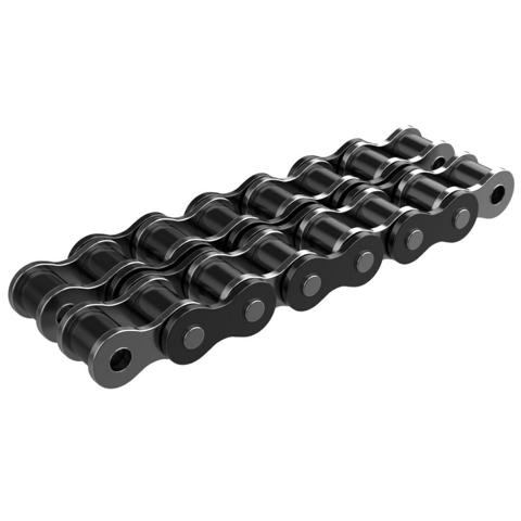 Eine duplex Rollenkette besteht aus Zwei Reihen von Rollen und Laschen.