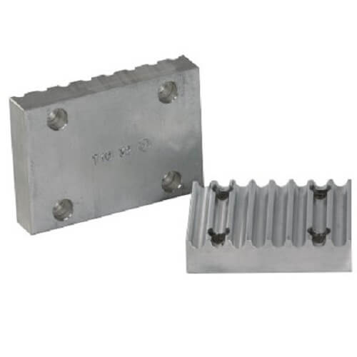 Klemmplatten sind Spannelemente aus Aluminium, mit denen man die Enden von endlich gefertigten Zahnriemen in Meterware aus Polyurethan oder Neoprene verbinden kann. Das Spannelement muss immer passend zu dem Profil des Zahnriemen sein, um die Elemente formschlüssig verbinden zu können. Ihre Anwendung finden die Klemmplatten überwiegend in linearen Systemen oder Transport-Anwendungen in denen Zahnriemen in Meterware zum Einsatz kommen.
