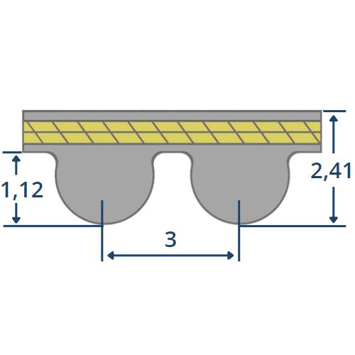 Die PowerGrip® GT3 Synchronriemen von der Firma Gates, sind eine Weiterenwicklung und verstärkte Ausführung der HTD-Zahnriemenprofile und empfehlen sich besonders für Hochleistungs-Industriemaschinen in der Werkzeug-, Papier- und Textilmaschinenindustrie, in der eine lange Lebensdauer sowie ein geringer Wartungsbedarf von großer Bedeutung sind. Durch die verstärkten Zugträger im Riemen, erreicht der GT3 Riemen eine Leistungssteigerung von bis zu 30% gegenüber der HTD-Zahnriemenprofile!